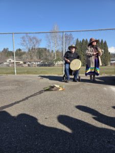 Students and staff were present for the Blessing of the future smokehouse site at Caledonia by Kathey Wesley and husband Blaine.